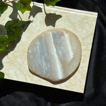 Nydelig Agat krystallskive som kan brukes til å skape litt mer magi i hjemmet ditt. Du kan feks bruke denne platen til å displaye dine krystaller på eller kjøpe en skiveholder og displaye den slik den er. Denne er 9,8x9,7x0,9cm og veier ca 160g.