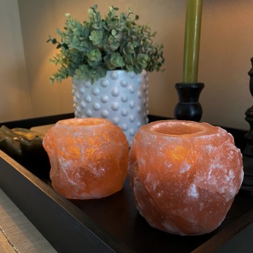 La lyset danse fra fjellets indre. Denne vakre telysholderen er laget av ekte saltstein fra Himalaya og veier ca. 900g. Når du tenner et telys i midten, skaper krystallen et varmt, dempet lys som stråler ro og balanse. Fargen vil variere litt.