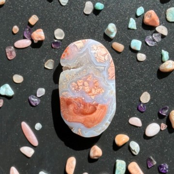 Nydelig lilla farget agat med drusy i seg. Denne er farget/dyed rosa. Størrelse: 4,8cm.