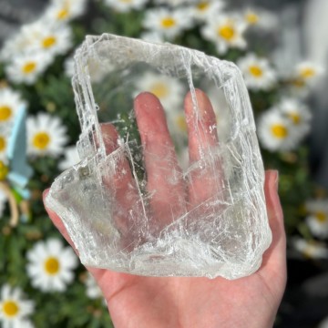 Selenitt er en utrolig skjør krystall og kommer som regel med små merker på seg fra frakt. Den er faktisk så delikat at så mye at selv en negl kan få steinen til å få riper. Denne er ca 13cm høy og veier 196g.