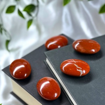 Små Rød Jaspis håndsteiner. Disse har en vekt på ca 35-38g og en ca størrelse på 4,4x3,4x1,5cm. Tilfeldig plukket! OBS: Små merker kan forekomme.
