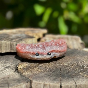 Rosa Sukkerspinn Agat skåret som et lønneblad - et unikt kunstverk på ca. 8 cm. Symbolet på styrke, kjærlighet og forvandling, med krystallens delikate rosa energi som bringer varme og harmoni inn i ditt hjem. Holder medfølger ikke, link nedenfor for kjøp