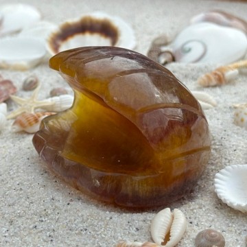 Kjempe søtt lite Oransje Bånd Kalsitt dragehode. Denne er ekstra søt med sin hvite kalsitt nesetipp<3 Den er 5,9cm lang og veier ca 73g.