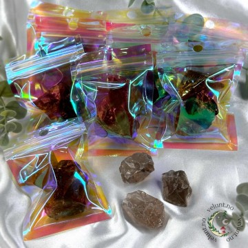 Den ultimate beskyttelsessteinen - en kraftfull krystall som jorder, skjermer mot negativ energi og gir indre ro. I denne pakken får du med 5 stk mini biter av Svart Turmalin. Posene er tilfeldig pakket og innhold vil variere i str+vekt. Tilfeldig plukk!