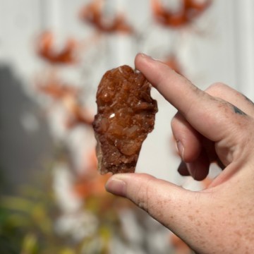 Honning Kalsitt råstein. Disse kan nesten minnes om en liten blokk med honning. Disse kommer i 2 forskjellige størrelser. Små/Medium: 40-60gram per stk. Medium/store: 90-135g per stk. Hvis du bestiller disse så vil det blir plukket ut en tilfeldig til deg