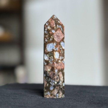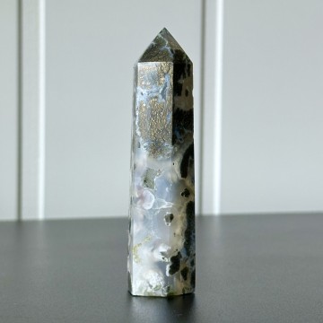 Sjø Jaspis er havets hjertestein - en magisk krystall som bringer lykke, emosjonell balanse og selvrefleksjon. Perfekt for deg som ønsker å leve mer i flyt og glede. Dette tårnet er 15cm høyt og veier ca 291g.