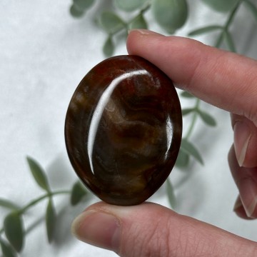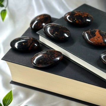 Små Rød Obsidian/Mahogny Obsidian håndsteiner. Disse har en vekt på ca 40-45g og ca mål er 5,3x3,4x1,7cm. Prisen er per stk. OBS: Små merker kan forekomme.