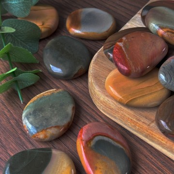 Polykrom Jaspis Lommestein fra Madagaskar. Disse har en størrelse på ca 3-5cm og fargen vil variere. (se bilder) Det blir tilfeldig trukket ut en til deg!