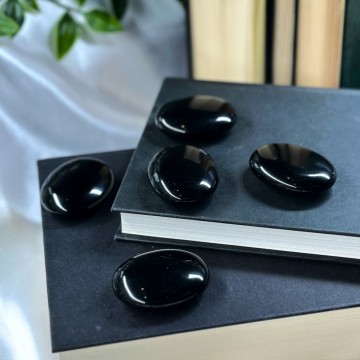Små Svart Obsidian (vulkansk glass) håndsteiner på ca 31-33g og har målene 4,4x3,4x1,5cm. OBS: Små merker forekommer.
