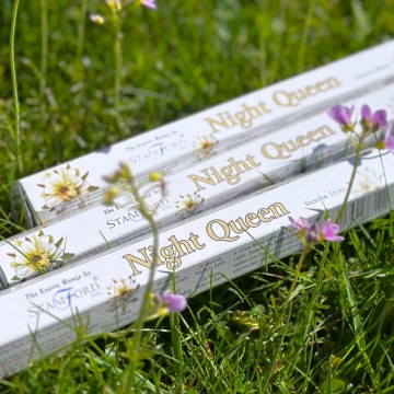 Moderne, delikat og elegant med toner av Oud, Orkide, Syrin, Jasmin og Musk. Den kommer også ganske så elegant innpakket. Hver pakke inneholder ca 15stk røkelsespinner (15gram totalt).