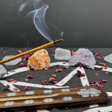 Forvandle enhver plass til et harmonisk fristed mens du tenner favorittrøkelsen din. Dens målrettede design, utsmykket med mønstre, symboler og motiver, tilfører en atmosfære av mystikk og eleganse. Ritualer-Meditasjon-Beroligende. Les mer under her.
