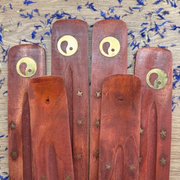 Røkelseholder til røkelsepinner med Yin-Yang motiv på seg. Disse er ca 26-27cm lange. Farge og størrelse vil variere da ingen av røkelseholderene er indentiske.