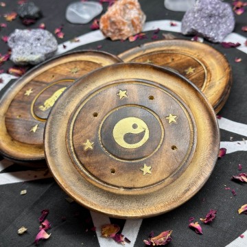 Denne røkelsesholderen med månesymbol bringer intuisjon, ro og feminin energi til ditt rom. Perfekt for meditasjon, ritualer og rensing av energi - månen leder deg mot balanse og åndelig harmoni.