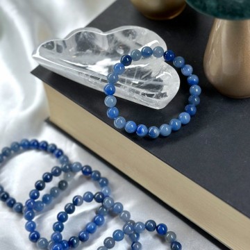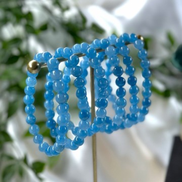 Unik blå skatt fra havets dyp. Den har intrikate fossiliserte mønstre og myke oseaniske fargetoner, noe som gjør den til en vakker blanding av naturhistorie og visuell tekstur. Disse er ca 8mm og passer 16-17cm håndledd.
