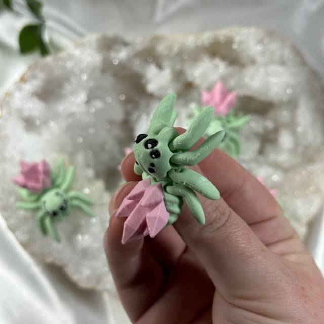 Kjempe søt 3D printet mini emerald kunzitt krystalledderkopp figur! Disse er ca 4,5cm lange. Prisen er per stk.