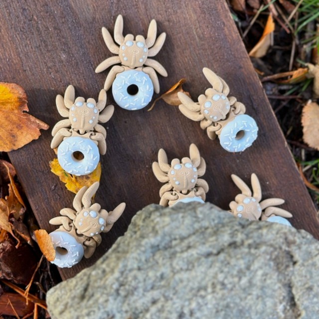 Spider Donut er den perfekte kombinasjonen av søtt og skummelt! Denne unike edderkopp figuren er produsert av oss i Velunt med kjærlighet og omtanke. Med en deilig donut på ryggen, er denne edderkoppen en morsom og uventet pynt til hjemmet ditt. Dette er også en perfekt leke for både store og små. (ikke under 3 år)
