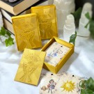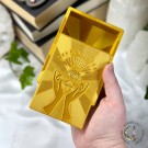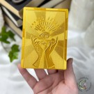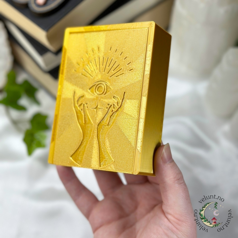 Dette elegante og praktiske produktet er perfekt for alle tarotentusiaster der ute. Med sin gullfarge og lekre design vil det definitivt være et blikkfang på ditt tarotbord. Vår tarotkort holder er spesielt designet for å passe tarotkort på størrelse 10,9cm lange og 7,7cm brede.