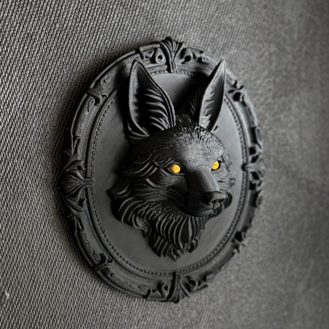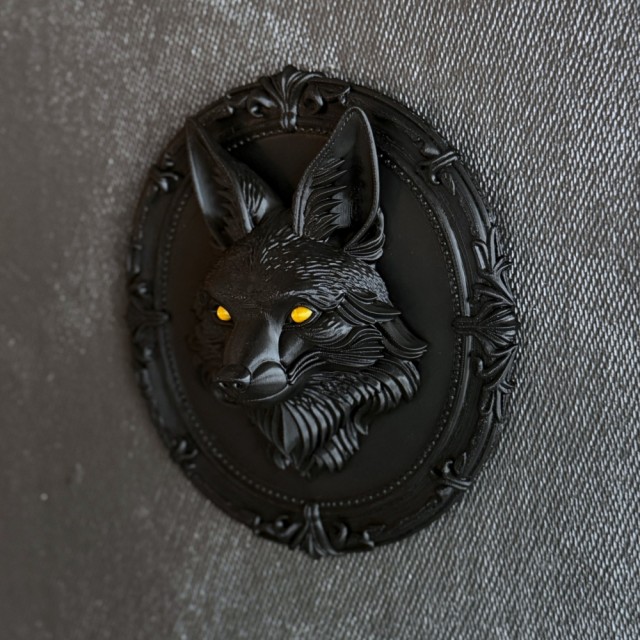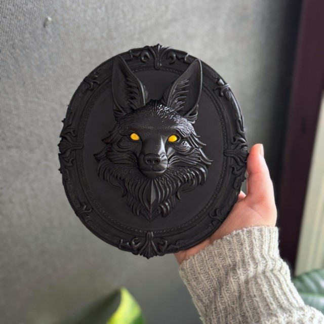 Detaljene i pelsen og rammen gir en dramatisk og eksklusiv følelse - som et relikvie fra en mørk eventyrskog. Dette er ikke masseprodusert veggpynt du finner overalt. Dette er et unikt Vel Unt-produkt, 3D-printet av oss på vestkysten i Norge.