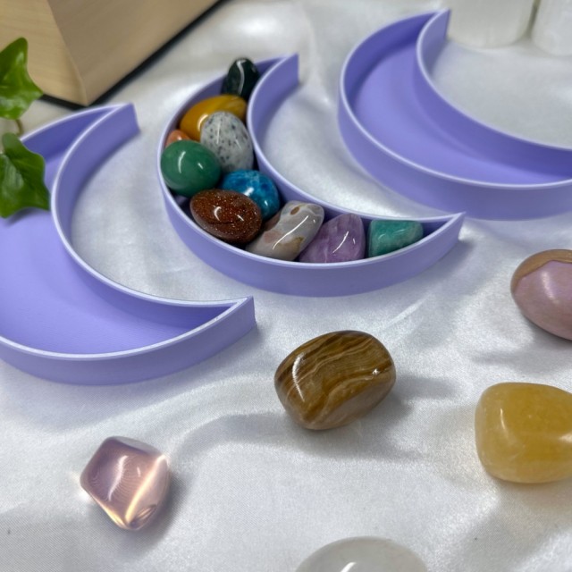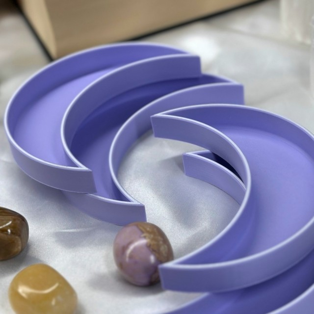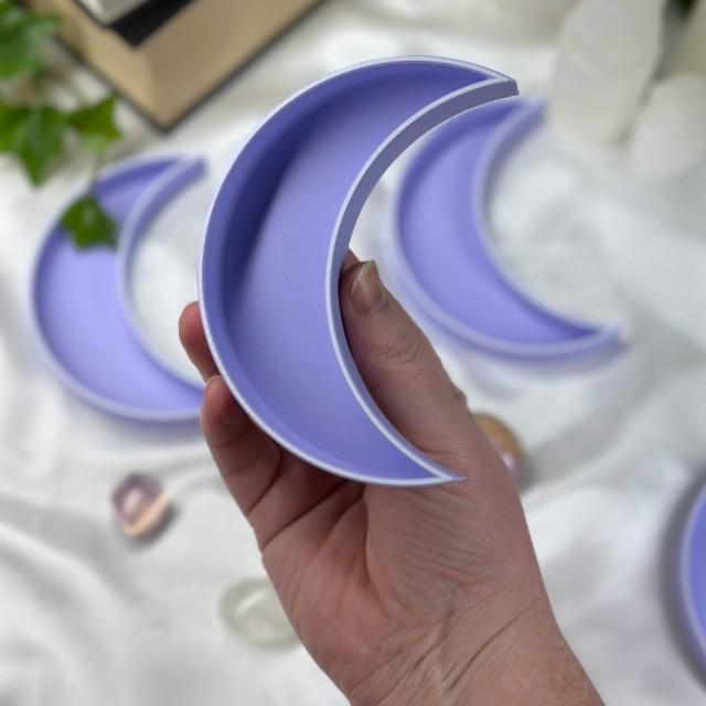 Sjekk ut disse magisk vakre oppbevaringsskålene formet som en måne. Disse er lyse lilla med hvit toppkant. Målene er 11,8x3,9x1,5cm. Prisen er per stk.