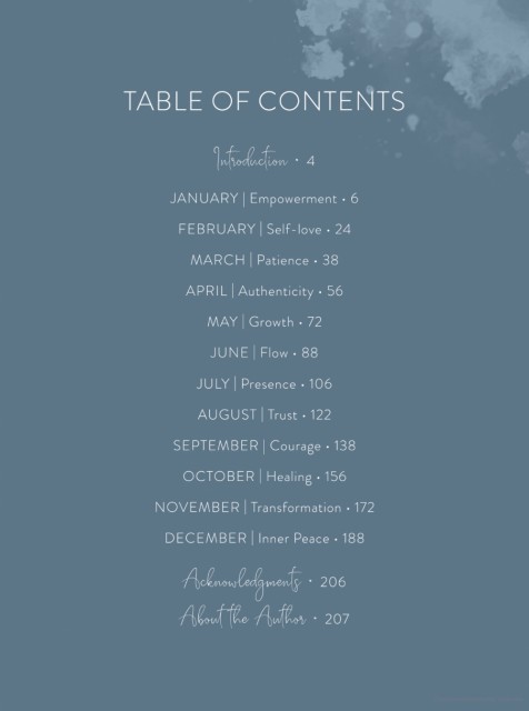 Boken er vakkert illustrert og bygget opp som en daglig praksis gjennom hele året. Hver dag får du en kort, men kraftfull tekst designet for å: