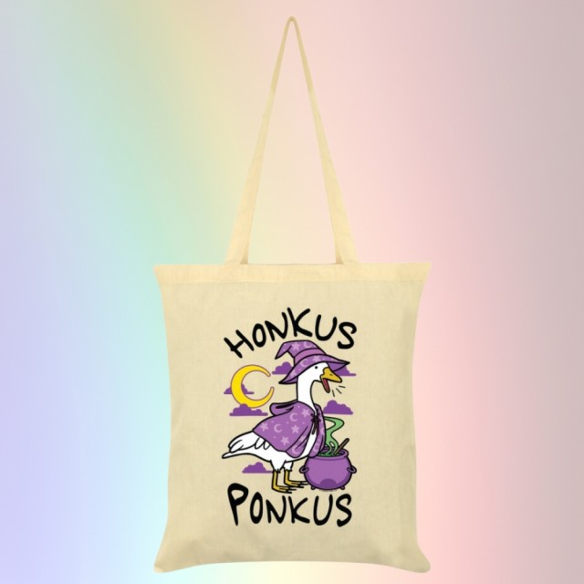 Denne morsomme witchy handlevesken gjør shopping så mye gøyere og har den ekstra bonusen at den har et kult design av Silly Goose foran med Honkus Ponkus skrift. Om du vil bruke den til handlenett eller oppbevare dine witchy ting, så passer den perfekt!