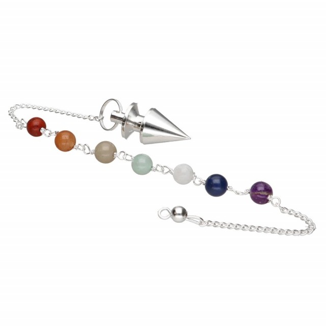 Langs kjedet finner du 7 chakra steiner, én for hvert energisenter i kroppen. Disse bidrar til å støtte energibalanse og flyt mens du arbeider. Kombinasjonen av metallens presisjon og chakra steinenes energetiske symbolikk gjør denne pendelen til et allsidig og kraftfullt verktøy.
