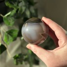 Nydelig grå Agat måne, dette har pittelitt drusy på seg samt litt dendritt (små prikkene). Dette er 5,4x3,9x1,2cm og veier ca 40g. Det er den krystallen på bildene du får hvis du bestiller denne. PS: Små naturlige merker forekommer på disse Agatene.