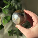 Nydelig Grp Agat håndstein med liten drusy lomme og dendritt. Denne er 5,8x4,1x2,1cm og veier ca 79g.