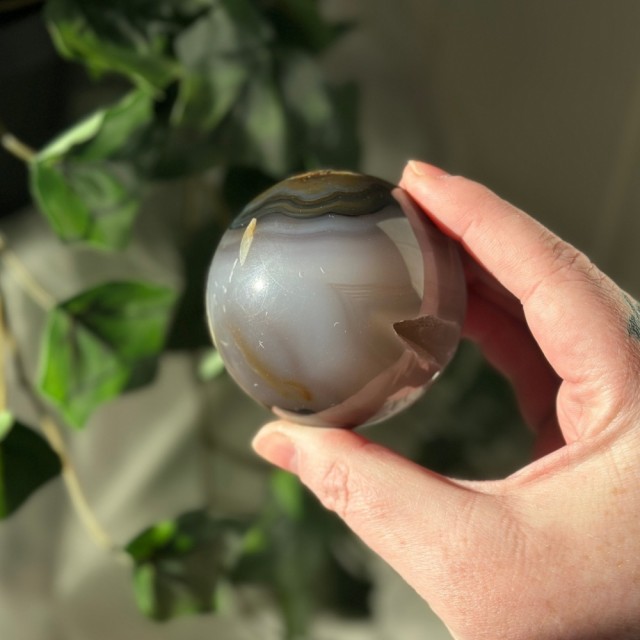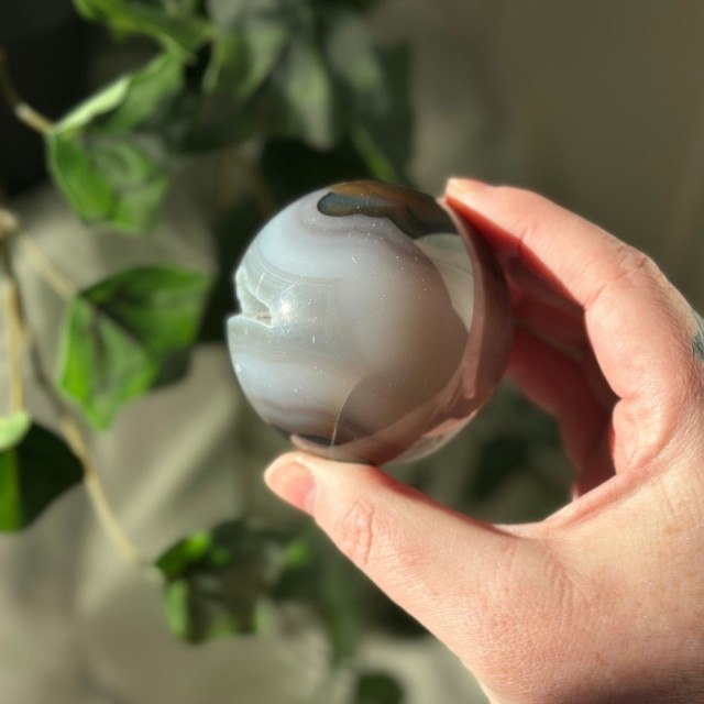 Orca Agat, også kalt Spekkhoggerstein, er en vakker krystall for indre ro, tilgivelse og selvaksept. Den myke blå-hvite energien minner om havets helbredende kraft og spekkhoggerens styrke. Dette er 6,3x6,9x2,7cm og veier 154g. Naturlige merker forekommer