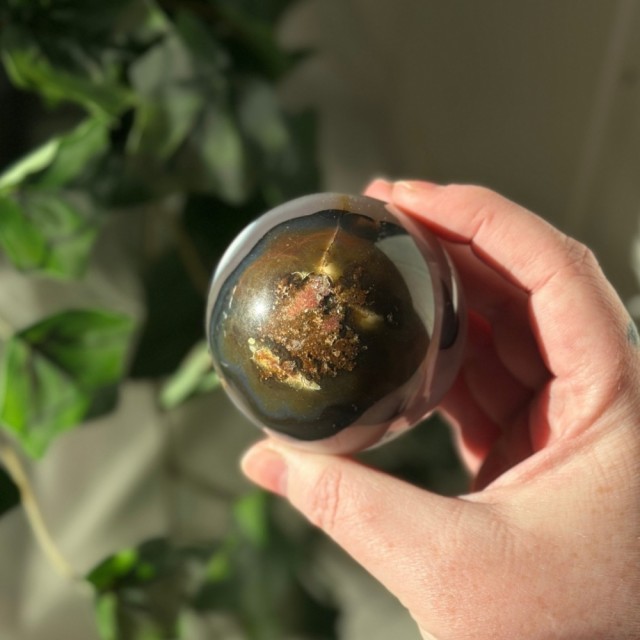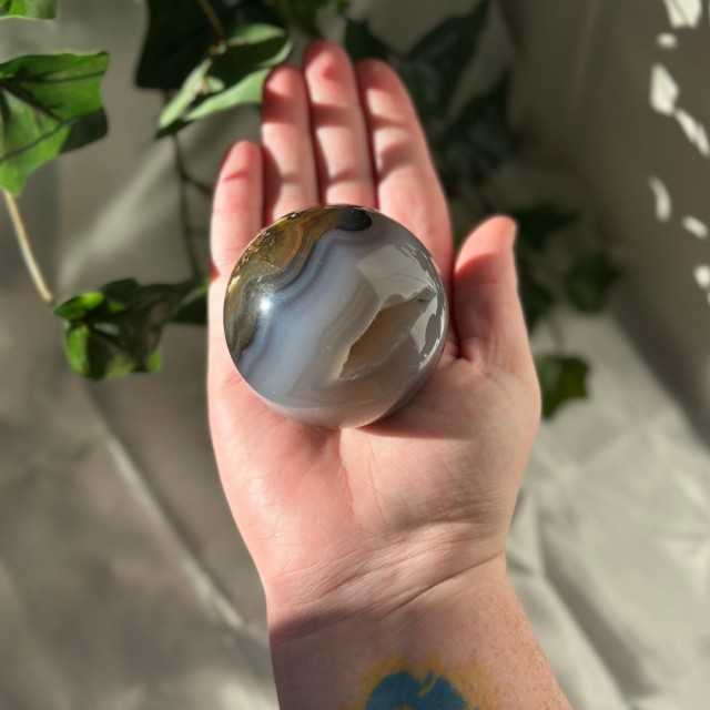 Som et lite stykke sol i krystallform stråler denne Gul Crazy Lace Agat kulen. Med sitt unike mønster bringer den lys, varme og balanse til ethvert rom, og minner deg på å finne glede, kreativitet og harmoni i hverdagen. Denne er 246g og 6,1cm.
