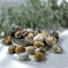 Crazy Lace Agat steinen minner oss om at latter er den beste medisinen. Dette er ikke bare et gammelt ordtak, latter utløser bokstavelig talt frigjøring av endorfiner for å lindre smerte, senke blodtrykket og slappe av muskler. På kort sikt øker latteren vårt inntak av luft, og stimulerer hjerte og lunger. På lang sikt reduserer det de kjemiske stressreaksjonene som svekker immunforsvaret. Så Crazy Lace oppfordrer oss til å le lenge og le ofte for et lykkelig og sunt liv! Den er også en klok venn hvis vi føler oss medisinsk maktesløse. Den hjelper oss å være vår egen helsepersonell, i stedet for å vente på at noen andre skal fikse oss eller fortelle oss hva vi skal gjøre.