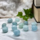 Nydelig Amasonitt tromlet fra Madagaskar. Disse er ca 2,5-4cm lange. Tilfeldig plukket. Se bilder for en mer nøyaktig størrelse informasjon. Små naturlige merker forekommer.