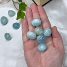 Angelitt håndstein. Denne her veier ca 61g og har målene 5,9x4x1,6cm. Det er den krystallen du ser på bildene du får hvis du bestiller denne. OBS: Små naturlige merker forekommer. -Bildene er tatt i sollys.