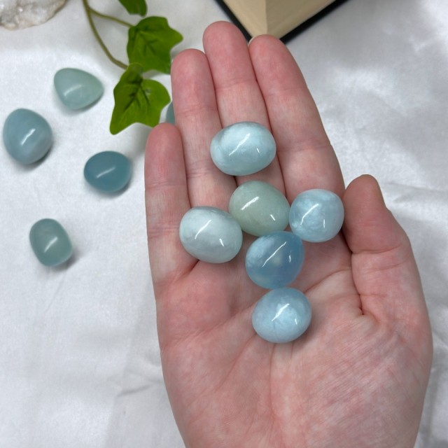 Blå Aragonitt er en beroligende stein som minner om stillheten i havet. Den lindrer stress, styrker kommunikasjon og bringer fred, klarhet og egenkjærlighet. Dette tårnet er 107g og 9,1cm høyt.