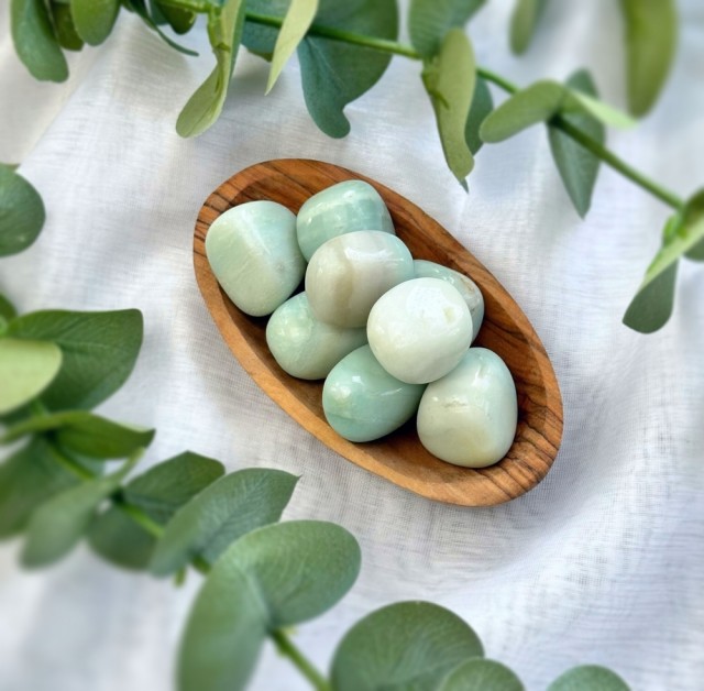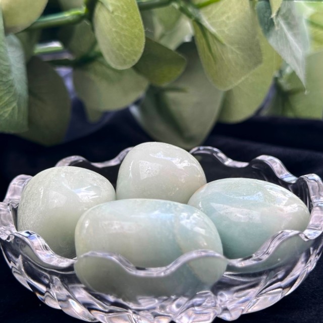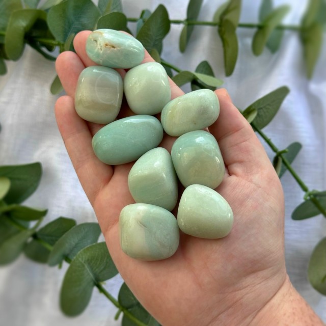 Nydelig Amasonitt tromlet fra Madagaskar. Disse er ca 2,5-4cm lange. Tilfeldig plukket. Se bilder for en mer nøyaktig størrelse informasjon. Små naturlige merker forekommer.