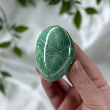 Nydelig Amasonitt tromlet fra Madagaskar. Disse er ca 2,5-4cm lange. Tilfeldig plukket. Se bilder for en mer nøyaktig størrelse informasjon. Små naturlige merker forekommer.