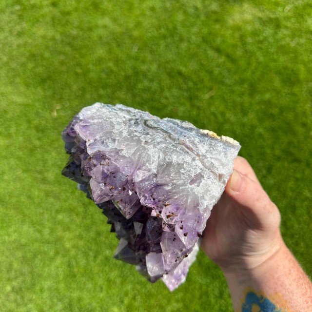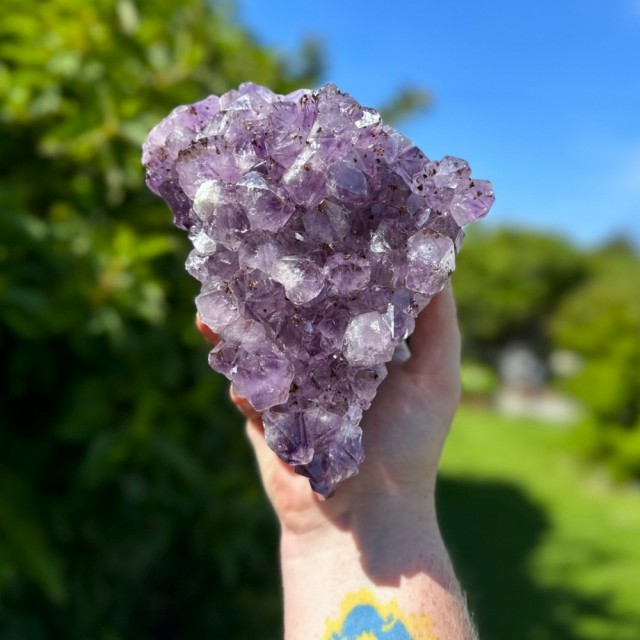 Ametyst - den kongelige steinen av ro og visdom. Med sine dype lilla krystaller bringer den harmoni, indre balanse og en aura av magi til hjemmet ditt. Perfekt for alter, dekor eller energiarbeid - en tidløs skatt for sjel og sinn. Mer informasjon under.