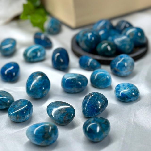 Blå Apatitt frigjør ideen om at du fortjener å lide, det frigjør sorg for deg selv og verdens tilstand. Den hjelper deg å gi slipp på smerte og lar deg dermed omfavne fred og glede. Den har en veldig oppløftende energi. Den kan hjelpe deg å få et høyere perspektiv på situasjoner, slik at du ikke blir fast i emosjonelle reaksjoner. Denne steinen vil hjelpe deg hvis du har frykt for høyder eller frykt for å falle på grunn av nåværende og tidligere livserfaringer.