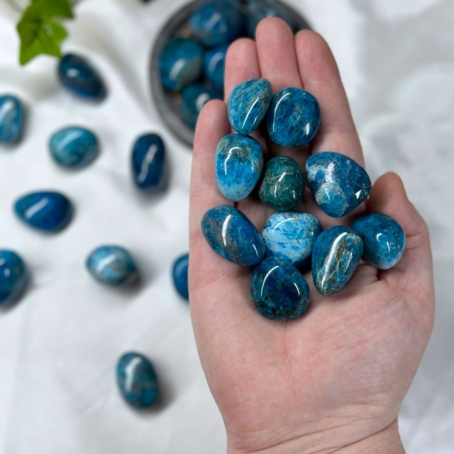 Blå Apatitt kan brukes som en drømmestein, og gir deg tilgang til det ubevisste for kreativ problemløsning.