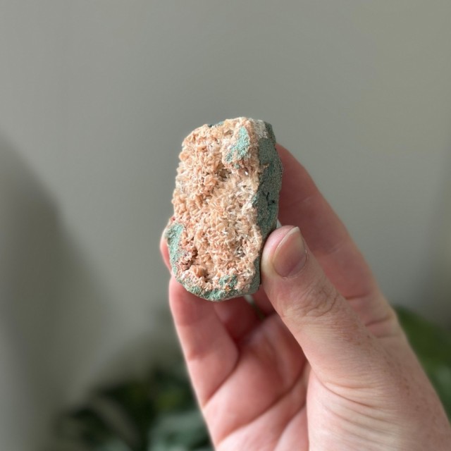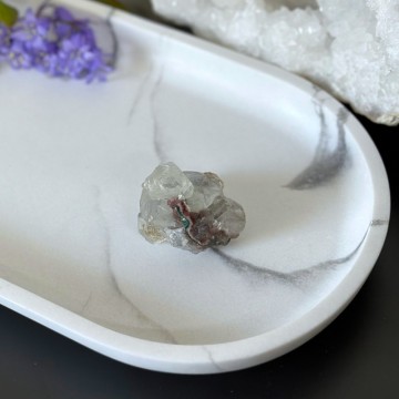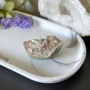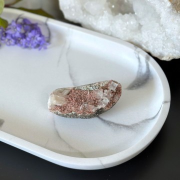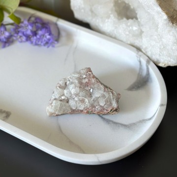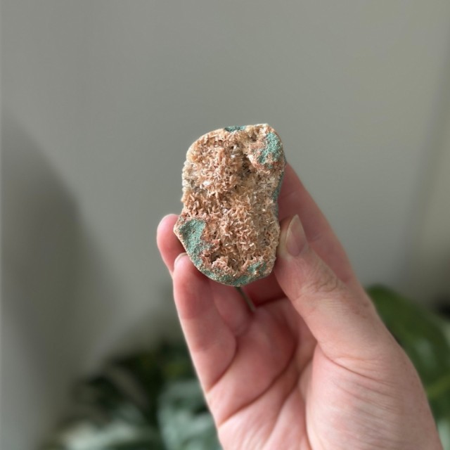 En unik krystallkombinasjon som bringer lys, ro og jording. Heulanditt, Skolesitt & Tre Agat jobber sammen for dyp healing og spirituell støtte. Denne er ca 64g og 5,9cm. OBS: Naturlige merker, groper og cracks forekommer.