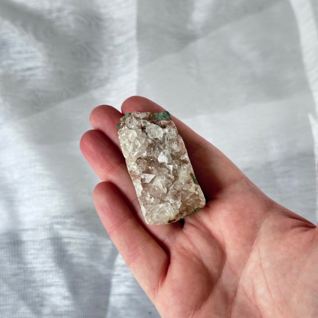 Nydelig liten rød Apofylitt (Apophylitt) drusy på stein fra Indonesia. Denne steinen veier ca 46g og er ca 5,3cm. Det er den på bildene du får om du bestiller denne. PS: Bildene er tatt i fotolys.