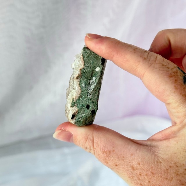 Nydelig rød & grønn Apofylitt (Apophylitt) gruppe fra Indonesia. Denne drusebiten veier ca 118g og er ca 6,8cm. Det er den på bildene du får om du bestiller denne. PS: Bildene er tatt i fotolys.