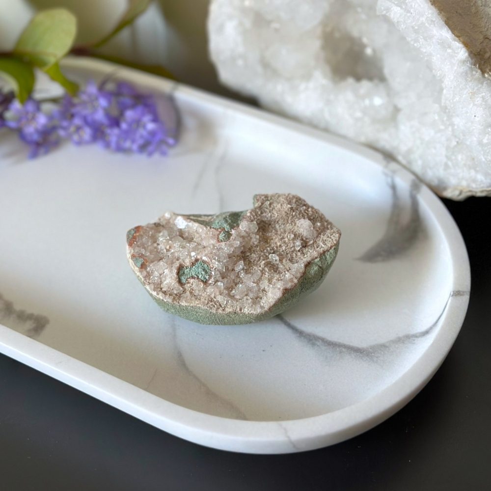 En klar resonator som leder elektrisk ladning og kobler til høyere sletter, Apofyllitt er en utrolig åndelig stein. Denne krystallen blir stadig klarere av negativ energi og fallende følelser. Denne krystallen begynner umiddelbart å fungere og fjerner blokkeringer, og sørger for at hjertet og hodet ditt forblir klart og tilkoblet og alltid klar til å overvinne de faste følelsene av stress og angst. Å kanalisere tanker og følelser som overgår våre enkle grenser, er denne skatten av en stein også kjent for sin evne til å utnytte skjulte psykiske krefter. Fra klarsyn og visjoner til å koble ånd og sannhet, denne steinen har store ting i vente for de som er åpne for dypere åndelig praksis.