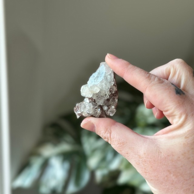 Nydelig rød Apofylitt (Apophylitt) gruppe fra Indonesia. Denne drusebiten veier ca 20g og er ca 5,3cm. Det er den på bildene du får om du bestiller denne. PS: Bildene er tatt i fotolys.