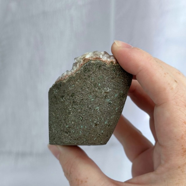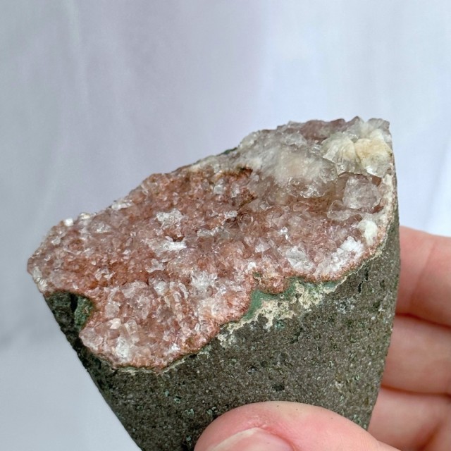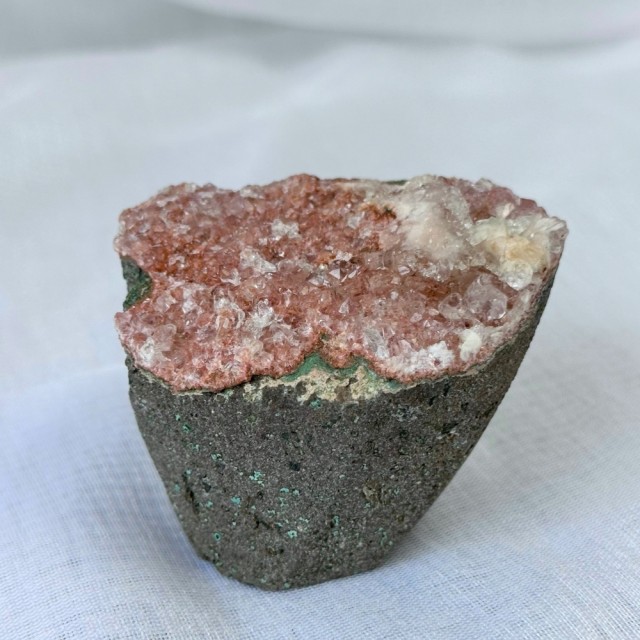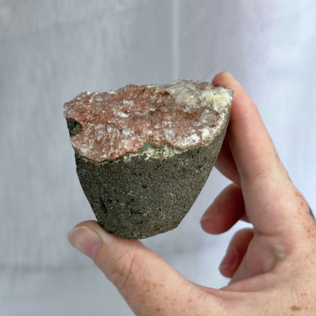 Nydelig rød Apofylitt (Apophylitt) gruppe fra Indonesia. Denne drusebiten veier ca 198g og er ca 5cm. Det er den på bildene du får om du bestiller denne. PS: Bildene er tatt i fotolys.
