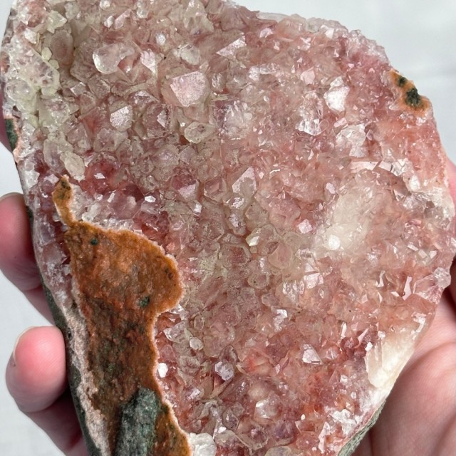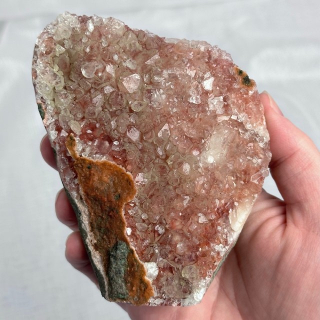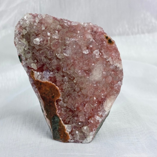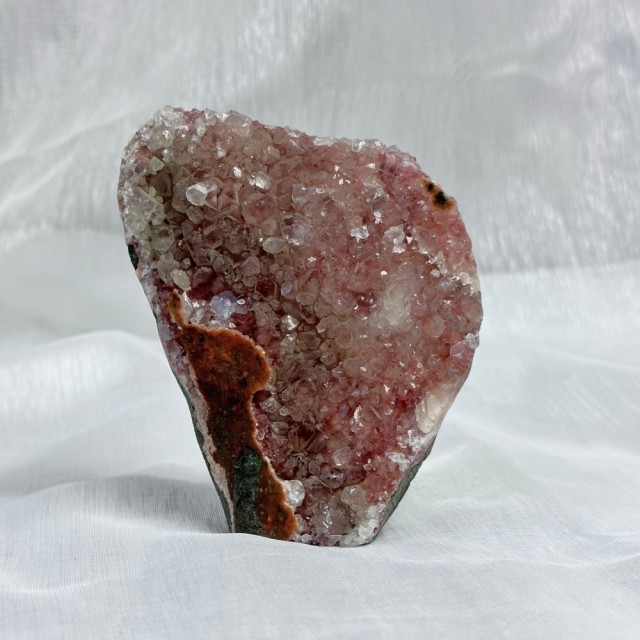 Nydelig rød Apofylitt (Apophylitt) gruppe fra Indonesia. Denne drusebiten veier ca 236g og er ca 10x8,4x4,5cm. Det er den på bildene du får om du bestiller denne. PS: Bildene er tatt i fotolys.