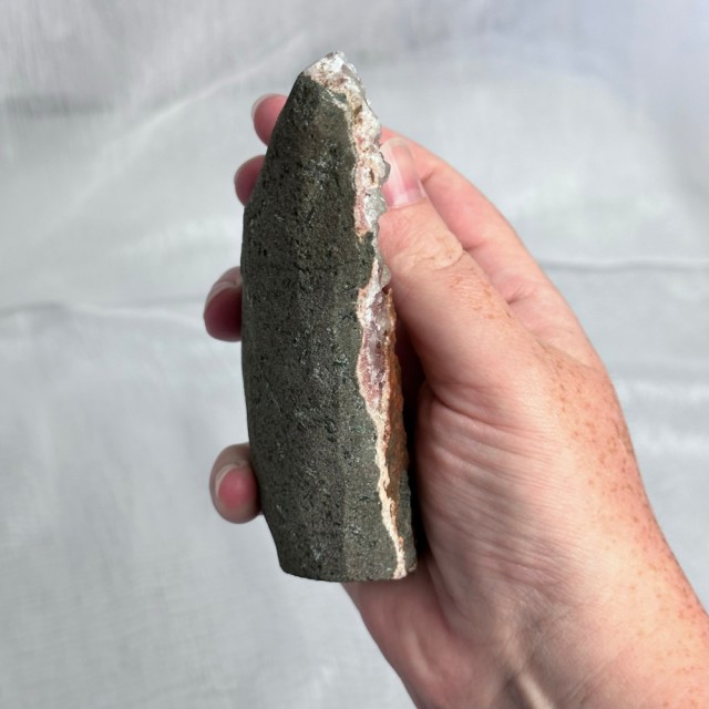 Nydelig stort Rosa Bånd Kalsitt krystallhjerte på 538g og har målene 13,4x11x1,9cm. Krystallholder medfølger ikke, men kan kjøpes separert. Du finner en passende holder inne på Krystaller - Tilbehør. Produktnavn: Krystallholder Til Hjerter (Ekstra Stor).
