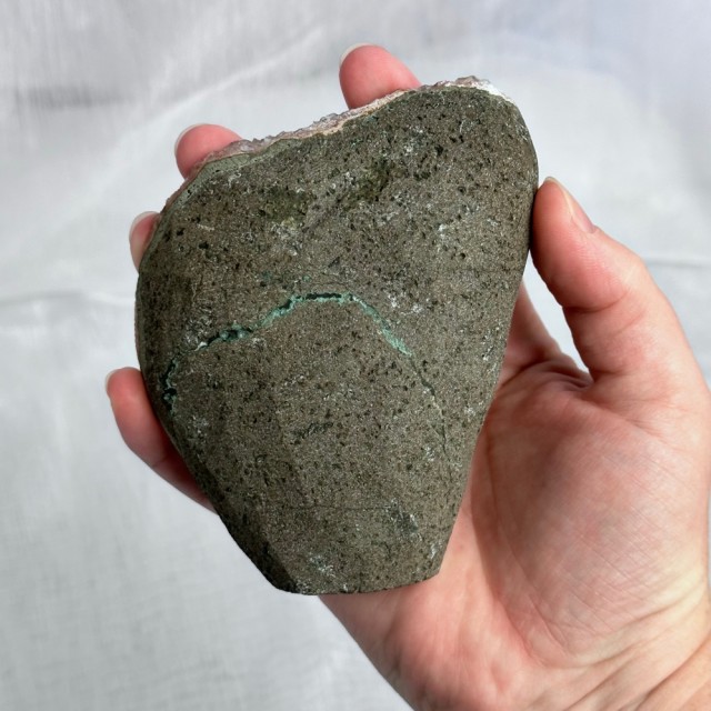 Ametyst - den kongelige steinen av ro og visdom. Med sine dype lilla krystaller bringer den harmoni, indre balanse og en aura av magi til hjemmet ditt. Perfekt for alter, dekor eller energiarbeid - en tidløs skatt for sjel og sinn. Mer informasjon under.