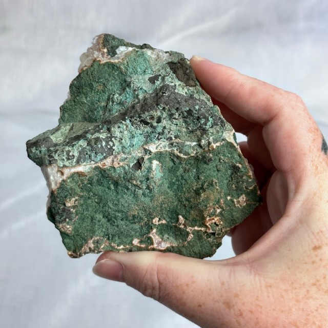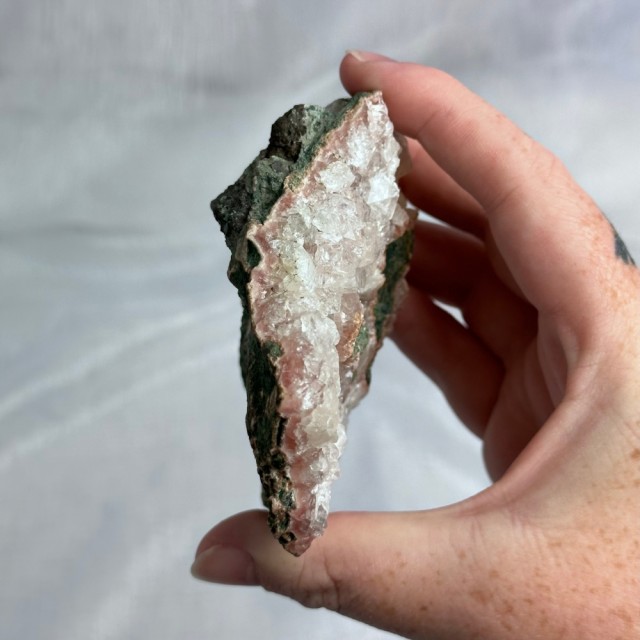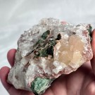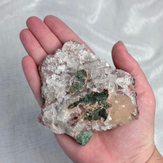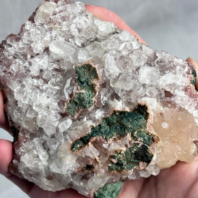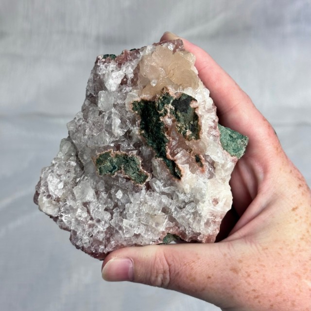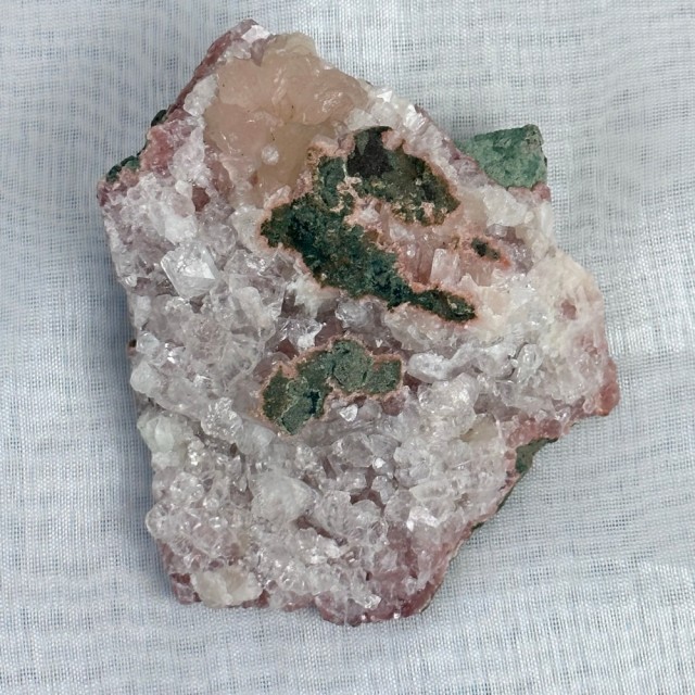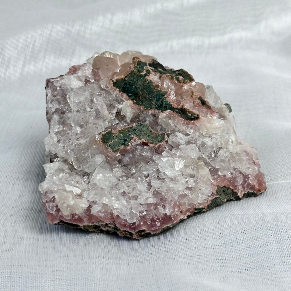 Nydelig rød & grønn Apofylitt (Apophylitt) gruppe fra Indonesia. Denne drusebiten veier ca 118g og er ca 6,8cm. Det er den på bildene du får om du bestiller denne. PS: Bildene er tatt i fotolys.