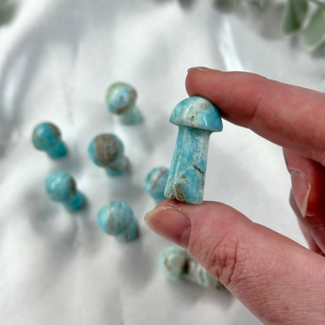 Nydelige Blå Aragonitt sopper/mushies! Disse er ca 2,5-3cm høye. Naturlige merker forekommer. Prisen er per stk.